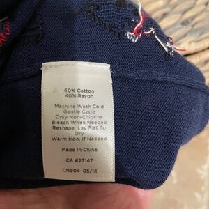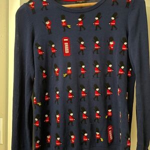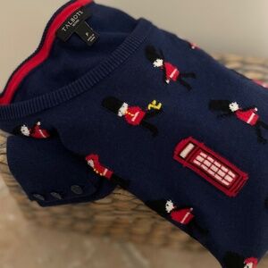 Vintage Talbots Sweater S Navy London Calling Cotton with Button Cuff