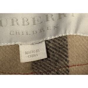The Burberry Children Brit 100% Wool Pea Coat in red is a stylish and classic outerwear piece for kids. Made from wool with a wool lining, this mid-length coat features long sleeves, a hood, and a button closure. Perfect for winter season, it offers both warmth and style for various occasions including travel, casual outings, and formal events. The timeless design and high-quality material make it a great choice for both everyday wear and special occasions, showcasing the luxury and elegance synonymous with the Burberry brand.
