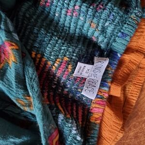 This is a unique piece with a dope pattern. There is some extra stretch around the torso and the straps are adjustable, allowing it to fit up to a S.