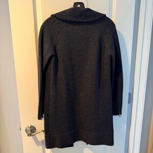 Joie Charcoal Gray Ermie Wool Coat, size small. Wool blend charcoal grey cocoon style zip front moto pea coat from Joie. Front is felted wool, arms and back are knit. Zip details on the cuffs. No flaws just some minor pilling / wear and ready for a new home! Zippers on the arms too