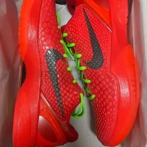 Nike Kobe 6 Protro Reverse Grinch Red and Black Athletic Shoes with Green Laces