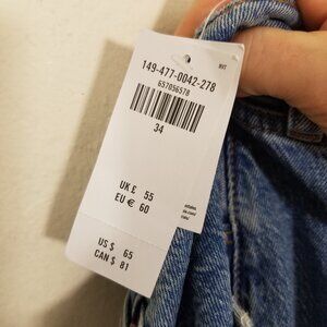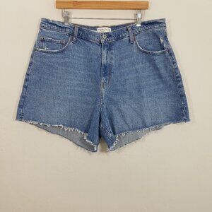 NWT Abercrombie & Fitch The Dad Short High Rise Curve Love Raw Hem Jeans 34/18