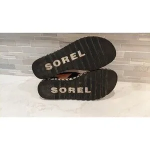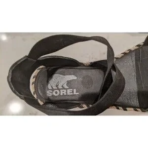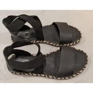 Women's SOREL Ella II Black Leather Criss Cross Sandals SZ 7