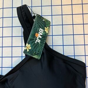 NWT – New With Tags. BMJL women’s two-piece bikini set, size large, in classic black. Features a sporty color-block design with high-waisted bottoms and a high-cut, cheeky fit for a flattering, leg-lengthening silhouette. Comfortable, supportive, and perfect for beach days, poolside lounging, or active vacation wear.