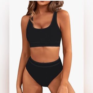 NWT BMJL Black Sporty High Waisted Bikini Two-Piece Cheeky High Cut Size L