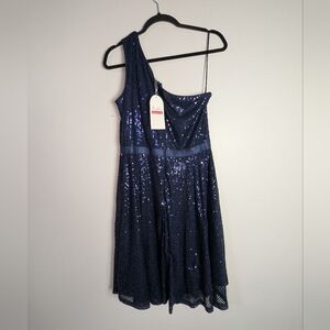 NWT Bery Love Sequin Navy One Shoulder Mini Dress Size Large L