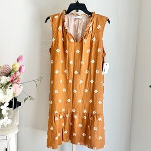 LAST CHANCE: Sleeveless Linen Blend Floral Tie Front Dress in Ginger, Large, NWT