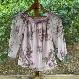 White House Black Market Pink Floral Off The Shoulder Blouse Size XXS