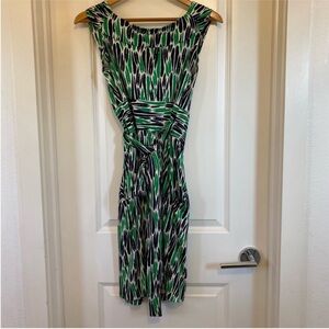 Diane Von Furstenberg Celosa Silk Green & Navy Blue Printed Wrap Dress size 4