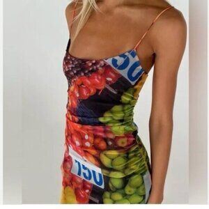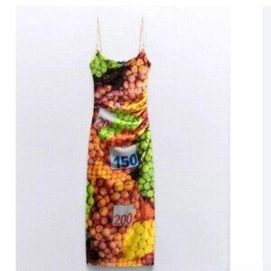 NWT ZARA Ruched Mesh Fruit Stand Strappy Maxi Dress 5039/201 Medium Bloggers Fav