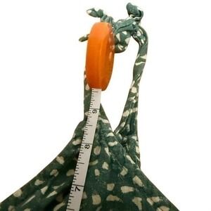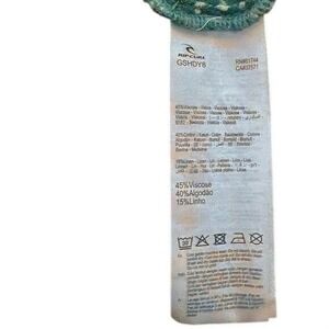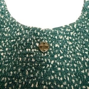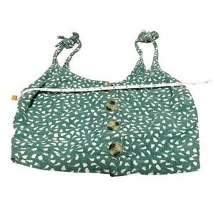 Rip Curl crop top with a green and white abstract print, textured ruched design, and adjustable knotted straps. Button‑front closure. Linen‑blend fabric that's lightweight and perfect for spring. Size XS.