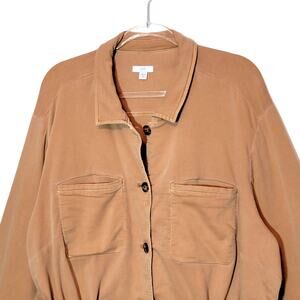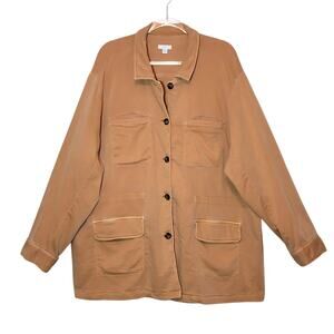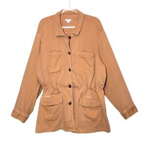 J. Jill Anorak Utility Jacket Button Front Drawstring Waist Tan 3X Chic Casual