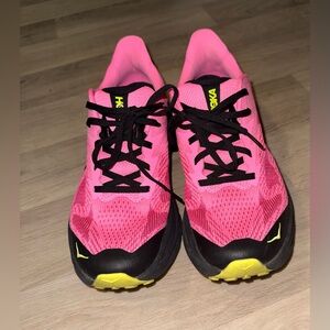 Women’s Hoka Challenger 8 Trail running shoes in color Bright neon pink with black accents. Lightweight and supportive. Ideal for running and workouts. Great condition!!