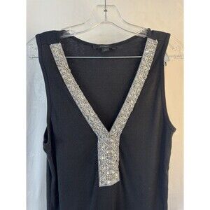 Express Large Black Tank Top Beaded Sequin SIlver