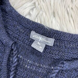 Eddie Bauer Women's M Navy Mixed Open Knit Sweater Coastal Grandma Boho Resort
