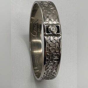 Authentic vintage COACH signature “C” bangle bracelet in polished silver-tone finish. This classic Coach piece features the iconic all-over Signature C design and a sleek, timeless look that pairs beautifully with both casual and dressy outfits.