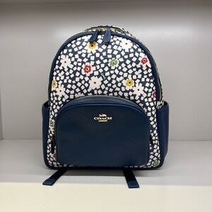 NWT Coach Court Backpack In Flower Pot Print Deep Blue Leather CBM23