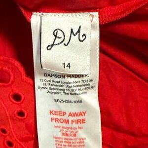 DAMSON MADDER Red Clancy Mini Dress Eyelet Cotton Lace Neck Size 14 US 10 NWT