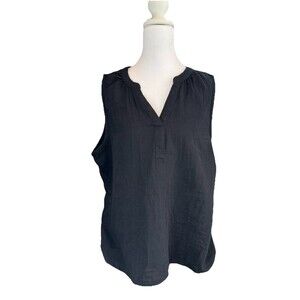 Sonoma Top Black Size XL Gauze Femme V-Neck Tank Blouse Sleeveless Shirt Womens