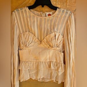 NWOT FARM Rio Pintucked crepe de chine blouse Size X-Small
