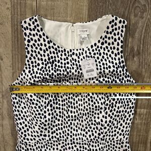 NWT J Crew Lined Sheath Dress in white with black/blue dots is a stylish and versatile option for various occasions. Made of comfortable cotton material, this sleeveless dress features a classic polka dot pattern, zip closure, and a knee-length hem. The dress is lined for added quality and is machine washable, making it easy to care for. With a size 4 fit and a flattering sheath style, this dress is perfect for weddings, parties, casual outings, workwear, or business events during the summer, fall, or spring seasons.