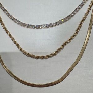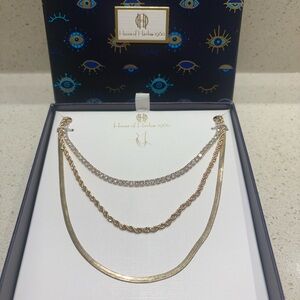 NWT House of Harlow 1960 Gold and Cubic Zirconia Necklace Stack Trio