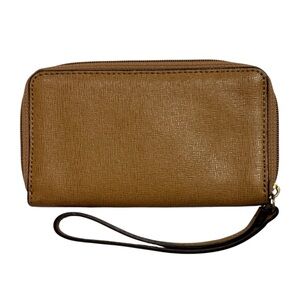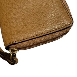 Coach Brown Saffiano Leather Zip Wallet Wristlet with Wrist Strap