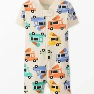Hanna Andersson Ice Cream Trucks Romper Boys 3-6M Vans 2-Way Zip Shortie Sleeper