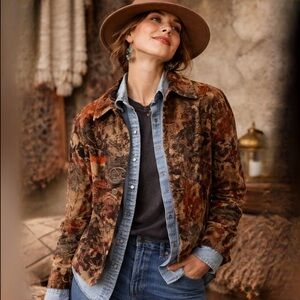 Vtg Christopher & Banks Brown Thin Corduroy Floral Button Down Pocket Jacket