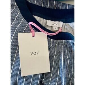NWT This beautiful boutique Navy Knit Striped Midi Dress and Detailed Ruffle Band on Sleeve Cap. The colors of the band is navy blue, white and Kelly green. The fabric feels ribbed, soft with round neckline & side slit detail to add to the style. It is relaxed fit with room to move. Wear it with your favorite sandals or tennis shoes.