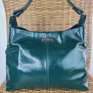Kate Spade Glossy Green Patent Leather Hobo Shoulder Bag Silver Stud Accents