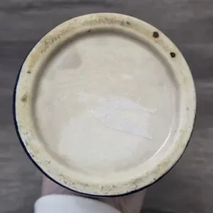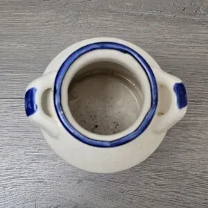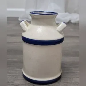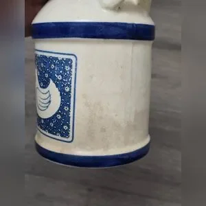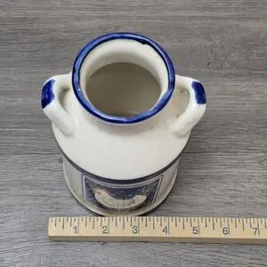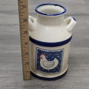 Vtg Farmhouse Chicken Ceramic Milk Can Utensil Holder Blue White