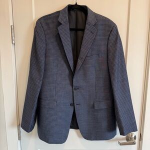 Calvin Klein 100% Wool Navy Checkered Blazer
