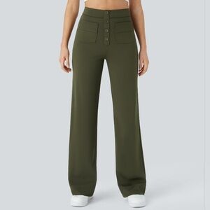HALARA 4 Buttons Pockets High Rise Forest Night Green BBL Pants Women's L
