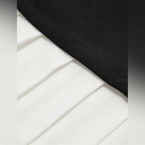 Chic black sleeveless top paired with a stylish white skirt. Perfect for a modern look.