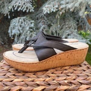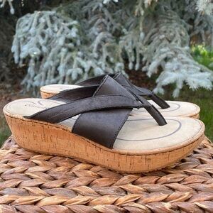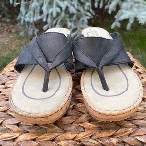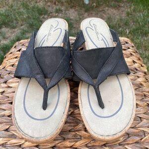 NEW Eddie Bauer Kara Black Leather Thong Toe Wedge Slide Sandal. Women’s size 9