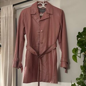 💕✨Pink Genuine Leather✨💕 Coat with Belt