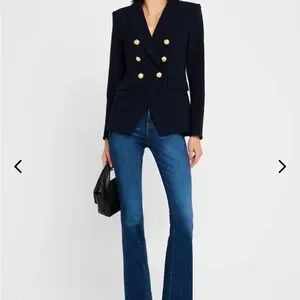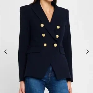 $695 Veronica Beard Miller Dickey Jacket Blazer Navy gold Double Breasted Sz 4