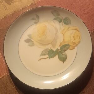 Charming dinner plate adorned with delicate yellow roses, adding a touch of elegance to your table setting. beautiful baveria plate Hand painted porcelain