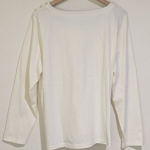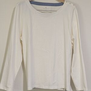 Talbots Cream Long Sleeve Top with Blue Trim