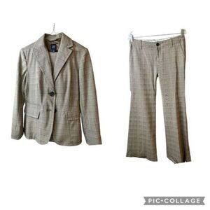EUC GAP Women’s Business Lined 2 Button Blazer & Dress Pants Brown Plaid- Size 2