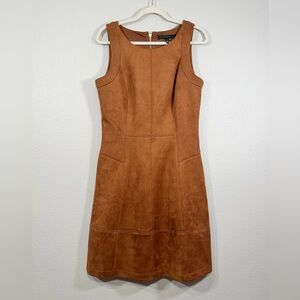 White House Black Market Dress Suede Sheath Sleeveless Pockets Brown Zip Women 8
