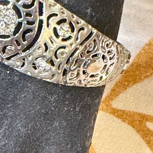 This elegant silver filigree bracelet adds a touch of sophistication to any outfit. Perfect for any occasion.