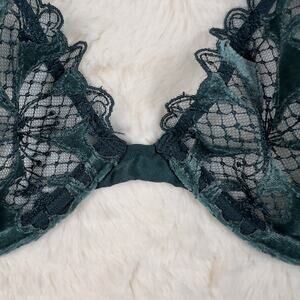 Victoria's Secret Very Sexy Low Cut Demi Bra Velvet Green Lace Underwire 34DD