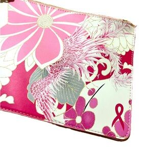 Chico’s Pink Floral Printed Wristlet Zip Pouch Breast Cancer Awareness