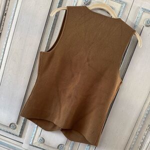 Chic tan knit vest with a sleek design. Ideal for layering. In wonderful condition!