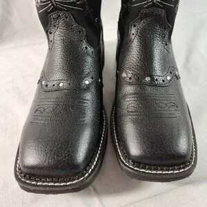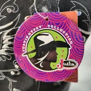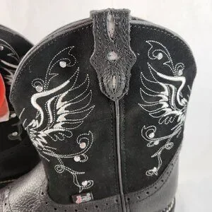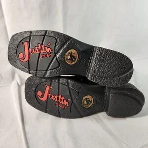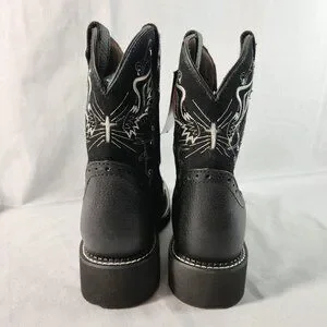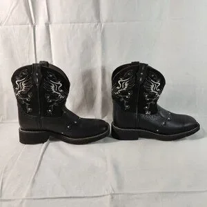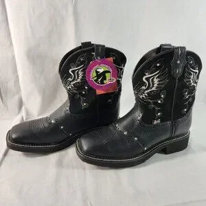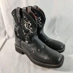 Justin Womens 10 B Black Boots Leather Western Square Gypsy Wings Cross Cowgirl