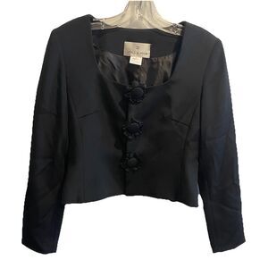 Willa Han 100% Silk Black Square Neck Blazer Jacket 8 Luxury Old Money Classic