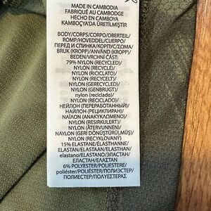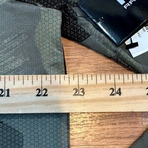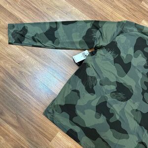 This shirt is long-sleeve. It is in a green camo pattern. It is very lightweight. The Wicking in material of the shirt removes moisture from the body and clothing, so wearing it is more dry, cool, and comfortable. Length 27.5 inches, chest pit to pit 22.5 inches. Made with nylon, elastane, and polyester. Never been worn. Tags including price tag still attached.