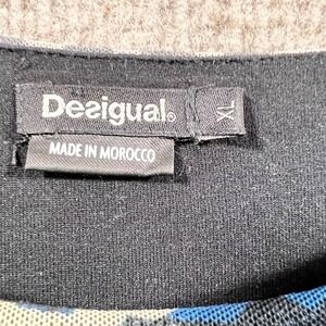 Desigual Women XL Chiara Mixed Print Puff Sleeve Patchwork Top Boho Artsy